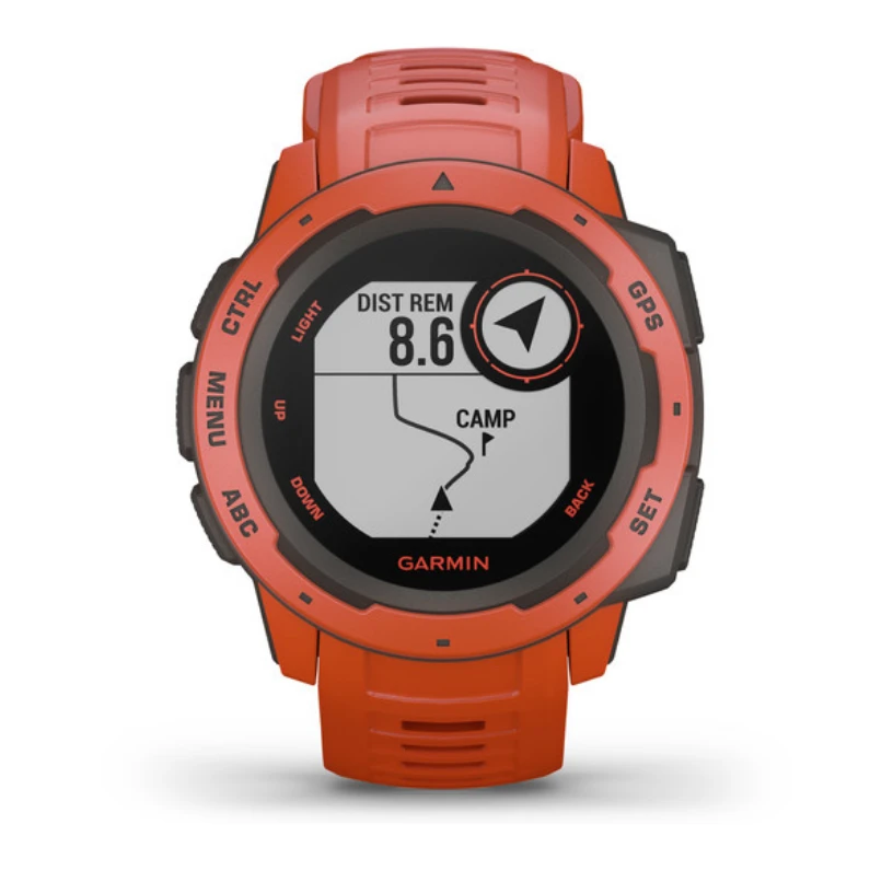 When you can rely on Instinct, the world can rely on you. This rugged, reliable outdoor GPS watch is built to the U.S. military standard 810G for thermal, shock and water resistance (rated to 100 meters). The fiber-reinforced polymer case adds strength and durability, and the chemically-strengthened, scratch-resistant display is high-contrast enough to read in bright sunlight, so you can take it with you into the extremes you face every day. Plus, the fully vented silicone bands include two independent, removable keeper loops to ensure a secure fit and to keep you from getting caught on things.